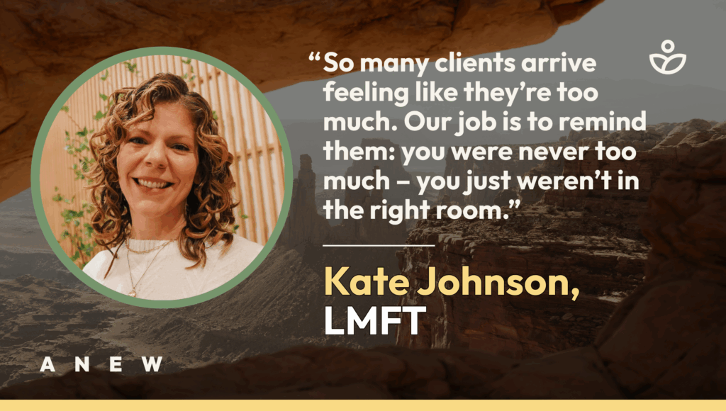 Kate Johnson, LMFT a licensed therapist at Anew Therapy and Certified Psychedelic-Assisted Therapy provider, sees this struggle firsthand.