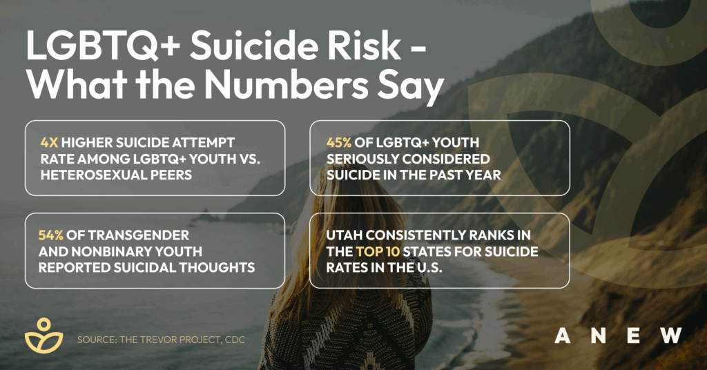 According to The Trevor Project, LGBTQ+ youth are more than four times as likely to attempt suicide compared to their heterosexual peers. For trans and non-binary individuals, the risk is even higher. In conservative regions like Utah, where stigma can be reinforced by both social and religious structures, these numbers tell a heartbreaking truth: far too many LGBTQ+ individuals are suffering in silence.