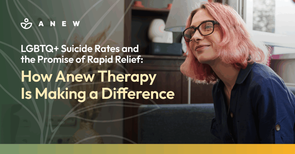 At Anew Therapy, we choose action over resignation. We aim to change the statistics and the lived experience of LGBTQ+ members of our community. Beyond hope, we provide rapid relief treatments for depression and a steady path forward for anyone who has felt unseen, stuck, or without a way through.