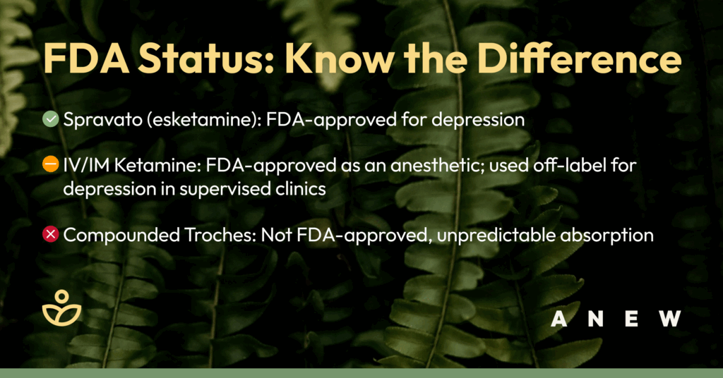 At Anew Therapy Utah, ketamine is administered under medical supervision using FDA-approved formulations or established clinical protocols. We believe the therapeutic potential of ketamine is real, but so are the risks if it’s used carelessly.