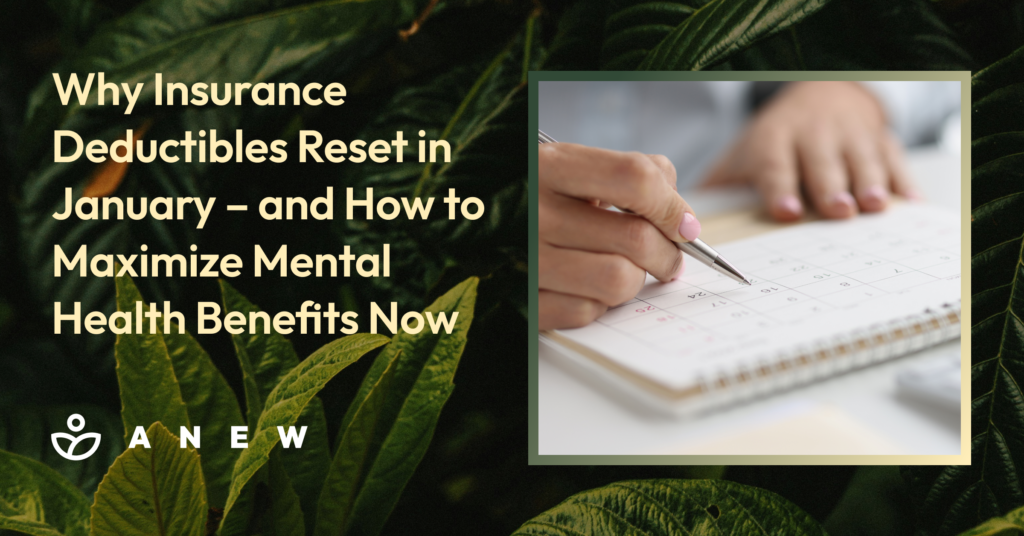 The end of the year is only three and a half weeks away, which means many things: Christmas, New Year’s resolutions, and the resetting of insurance deductibles. January brings the opportunity to reassess your benefits, plans, and coverage regarding mental health insurance deductibles. The average individual health insurance plan typically begins January 1st and ends December 31st. While there are many terms and moving parts encompassed in mental health insurance, this article highlights the best ways to maximize your mental health benefits with readily available options.