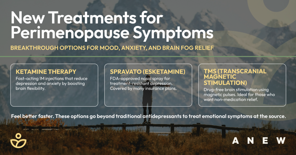 Anew Therapy Utah, located in Sandy, provides ketamine therapy, Spravato, and TMS tailored specifically to women navigating mood and cognitive changes during perimenopause.