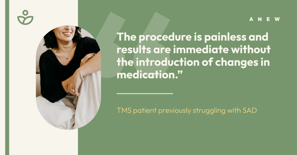 At Anew Therapy Utah, we’re committed to helping you navigate the challenges of SAD with cutting-edge treatments and compassionate care. Whether you’re seeking traditional therapies or exploring innovative options like TMS, ketamine therapy, or Spravato, we create personalized treatment plans that offer real hope and effective solutions.